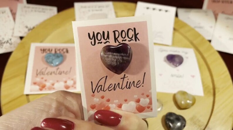 This super cool valentines are great for older kids. Each set comes with 24 cards (8 of each of 3 designs) and 24 heart natural gem crystals. Spectacular!