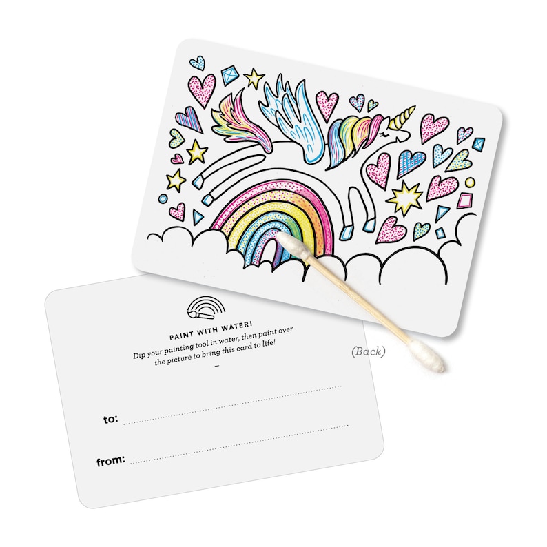 These lovely little valentines from Inklings Paperie on Etsy feature a pretty unicorn scene that your kid’s friends will love to paint.